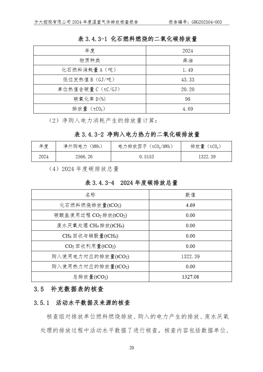 方大控股有限公司溫室氣體排放核查報告